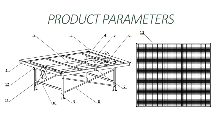 | Item No. | Part Name | Material | TECHNICAL: 1. Moving space: 300 mm - 500 mm. 2. Installation condition: concrete/ground. 3. Bench sizes can be customized refer to the greenhouse area and layout. |